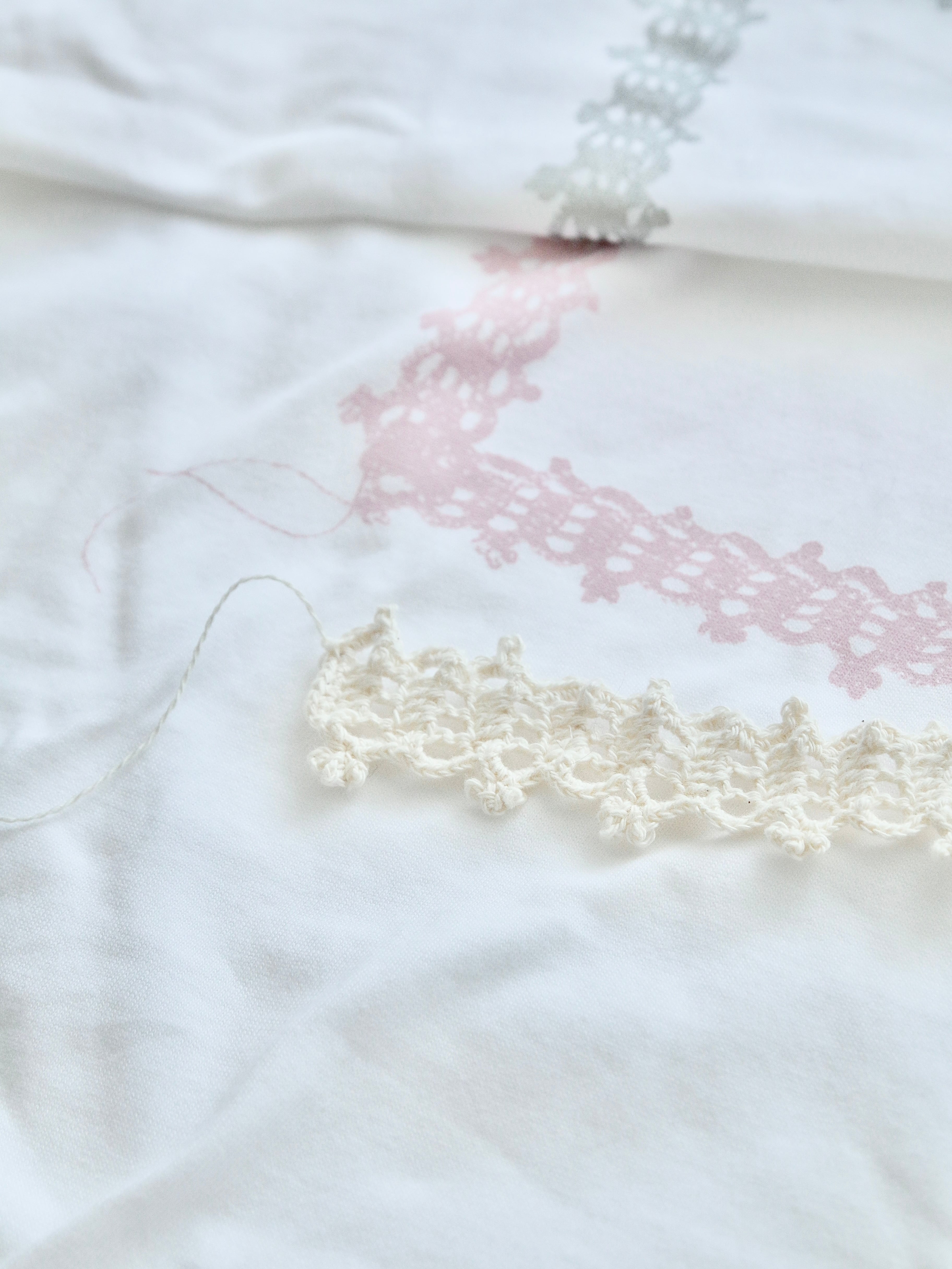 蕾をモチーフに編んだレースを