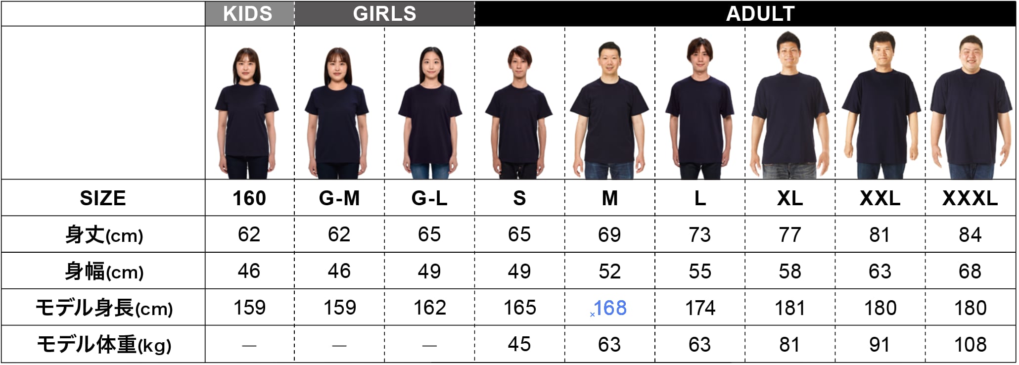 ⚪︎160・GIRLS-M・GIRLS-L・S・M・L・XL・XXLからお選びいただけます。